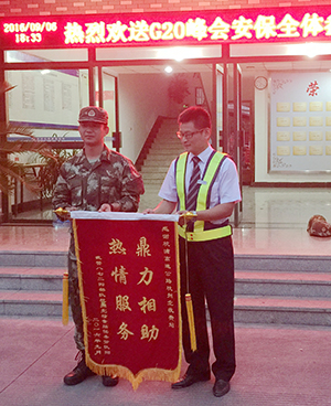 杭浦高速公路杭州北收費(fèi)站作為杭州市主要入城口之一,G20峰會(huì)期間承擔(dān)著保障與會(huì)政要、嘉賓高速出入安暢的重任。身為收費(fèi)所所長(zhǎng),朱卿深知責(zé)任重大。他以“高標(biāo)準(zhǔn)、高要求”為工作指導(dǎo)思想,積極投身收費(fèi)站綜合整治工作,每天親臨現(xiàn)場(chǎng)督促收費(fèi)站周邊物流企業(yè)拆違進(jìn)度,主動(dòng)承擔(dān)安檢站施工期間的后期保障服務(wù),確保了各項(xiàng)施工按時(shí)順利完成。他主動(dòng)放棄節(jié)假日休息時(shí)間,全心撲到收費(fèi)站窗口服務(wù)提升工作中。小到女員工佩戴的絲巾等配飾采購,大到各國(guó)政要通行安全保暢工作部署,都能看到他忙碌的身影。他克服各種困難,多方協(xié)調(diào),為執(zhí)勤武警官兵提供了整潔的居住環(huán)境、周到的后勤服務(wù)和貼心的日常幫助,確保了武警官兵圓滿完成安保執(zhí)勤任務(wù)。收費(fèi)所的付出獲得了武警官兵的一致好評(píng),安保任務(wù)結(jié)束后特地送上“熱情服務(wù) 鼎力相助”錦旗表示感謝。
