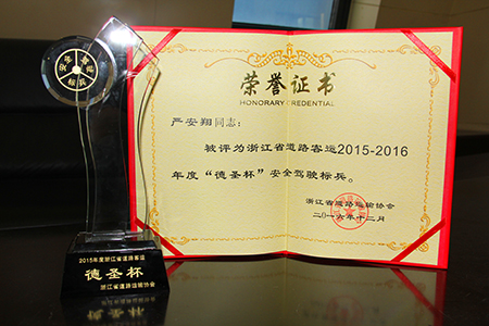 近日,國鴻汽運(yùn)公司駕駛員嚴(yán)安翔被浙江省道路運(yùn)輸協(xié)會評為浙江省道路客運(yùn)2015-2016年度“德圣杯”安全駕駛標(biāo)兵。據(jù)悉,此次活動評選標(biāo)準(zhǔn)嚴(yán)格,全省僅有17人獲此殊榮,嚴(yán)安翔是嘉興市唯一一位獲得該榮譽(yù)的駕駛員。