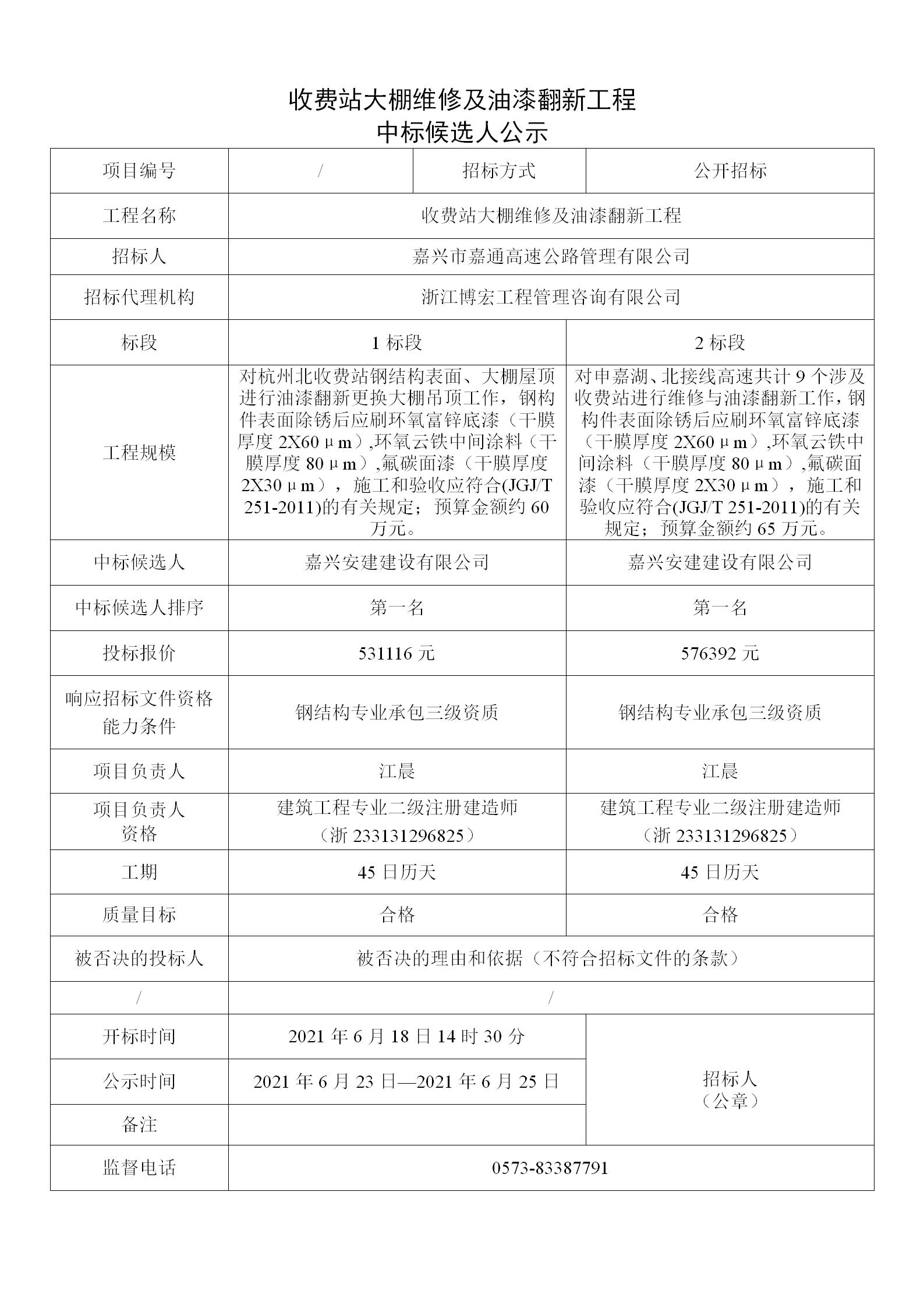 收費(fèi)站大棚維修及油漆翻新工程中標(biāo)候選人公示