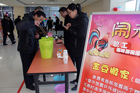 活動從2月8日到11日持續(xù)4天,共設置了“趕雞入欄、迷你投籃、飛鏢搶分”等10個娛樂項目。這些活動項目趣味性強、參與門檻低,引起了廣大職工的濃厚興趣,大家摩拳擦掌、躍躍欲試。在“掌聲明珠”活動場地上,選手們手持放有乒乓球的乒乓拍,快速穩(wěn)健地繞乒乓桌行走;再看“金豆搬家”項目,一個個動作靈活,手法穩(wěn)準,很快就完成了任務,贏得了高分?;顒蝇F場氣氛熱烈,到處充滿了歡聲笑語,爽朗的笑聲一浪高過一浪,不斷將游園活動推向高潮。當大家最后從工作人員手中接過活動獎品時,個個都笑容滿面地說著“開心”和“感謝”。