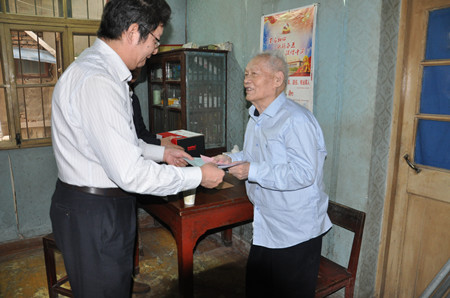 當(dāng)天下午,國鴻公司相關(guān)人員一行專程來到公司離休干部劉書勉家中,為他送上市委老干部局的慰問信和慰問品,并送上節(jié)日的祝福和組織的問候。劉書勉同志激動地握住慰問人員的手,對領(lǐng)導(dǎo)們的關(guān)心和問候表示感謝。