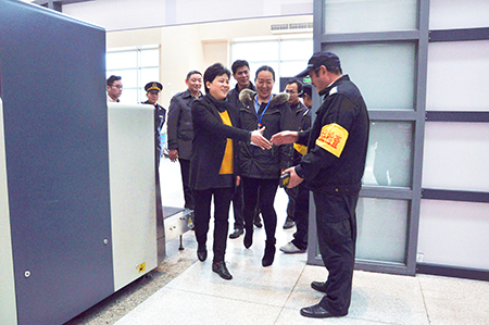 魯俊書記一行先后來到客運中心候車室、售票廳和公交換乘連廊區(qū)域,看望堅守崗位的檢、售票人員以及安檢人員,與他們親切握手,對他們不怕苦不怕累的精神予以贊揚,并希望他們在堅定不移保障道路順暢、百姓出行安全的同時,也要保重好身體。在詳細了解了春節(jié)期間的客流情況和車站的各項保障措施后,魯俊表示,要始終把安全放在首要位置,進一步提高服務質量,確保旅客走得了、走得好。