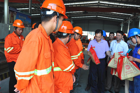 7月14日上午,浙江省總工會黨組成員、省紀(jì)委派駐紀(jì)檢組長林金德來到灣北二期工程工地進行高溫慰問。市人大常委會副主任、總工會主席沈利農(nóng),集團公司總經(jīng)理李云鴻及相關(guān)負(fù)責(zé)人陪同慰問。
