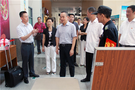 趙雁一行先后來到汽車客運(yùn)中心售票廳和危檢崗,仔細(xì)查看了車站實(shí)名制乘車和進(jìn)站安檢環(huán)節(jié),詢問了車站客流情況和各項(xiàng)安保工作,并檢查了車站消防設(shè)施。