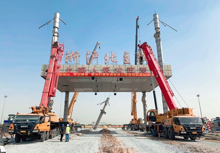 在王江涇收費(fèi)站,胡奕軍一行現(xiàn)場聽取了公司項(xiàng)目負(fù)責(zé)人關(guān)于各分項(xiàng)工程的介紹,詳細(xì)了解了取消高速公路省界收費(fèi)站整體工程進(jìn)度、推進(jìn)撤站工作難點(diǎn)及下階段撤站工作計(jì)劃等情況。胡奕軍對撤站工作組織實(shí)施和整體進(jìn)展情況表示肯定。