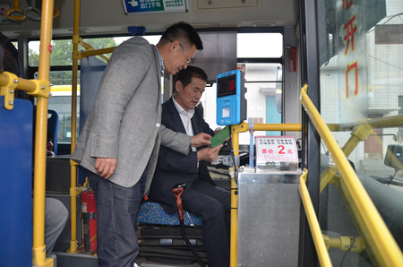 何宇健一行首先來到公交場站,走進車廂實地查看“公交車乘坐優(yōu)待政策”貫徹落實情況,現(xiàn)場抽問駕駛員相關(guān)優(yōu)待政策內(nèi)容,并對國鴻公交公司在樞紐站候車亭、車廂內(nèi)宣傳相關(guān)政策,給每位駕駛員發(fā)放全面的優(yōu)待政策卡片等舉措給予了充分肯定。他要求駕駛員們要認真學習、全面了解、嚴格執(zhí)行,同時提出在文明城市檢查、烏鎮(zhèn)互聯(lián)網(wǎng)大會、上海進口博覽會期間,全體公交從業(yè)人員要切實提高安全行車、優(yōu)質(zhì)服務意識,營造安全文明的公交出行環(huán)境。