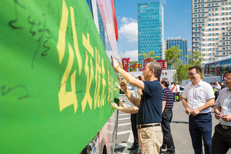 綠色出行,城市因我而暢通;無(wú)償獻(xiàn)血,生命因你而延續(xù)。為深入貫徹落實(shí)黨的十九大關(guān)于開(kāi)展綠色出行行動(dòng)決策部署,倡導(dǎo)“公交優(yōu)先、綠色出行”理念,9月16日上午,嘉興市在紅船學(xué)院公交首末站舉辦了2019年“公交出行宣傳周”活動(dòng)啟動(dòng)儀式暨浙江省無(wú)償獻(xiàn)血榮譽(yù)證授卡儀式。本次活動(dòng)由市交通局、市衛(wèi)健委、嘉通集團(tuán)主辦,市運(yùn)管局、市紅十字會(huì)、市公交協(xié)會(huì)、市中心血站、公交企業(yè)等10余家單位代表、市民乘客、公交駕駛員和優(yōu)秀獻(xiàn)血者代表等120余人參加活動(dòng)。