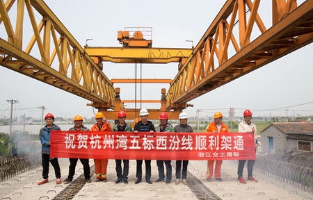 5月1日,時(shí)值勞動(dòng)節(jié),杭州灣大橋北接線二期項(xiàng)目TJ05標(biāo)段的建設(shè)工人用辛勤的汗水詮釋勞動(dòng)最美。在西汾線分離橋施工現(xiàn)場(chǎng),建設(shè)工人正在進(jìn)行最后一片小箱梁安裝作業(yè),隨著最后一片小箱梁吊裝到位,西汾線分離橋全線架通,為社會(huì)車輛橫跨高速主線提供極大的便利,對(duì)鏈接村莊地方路網(wǎng)具有重要意義。