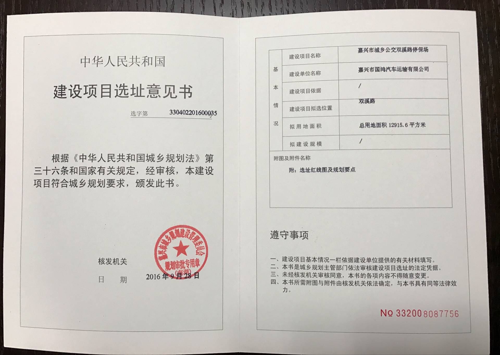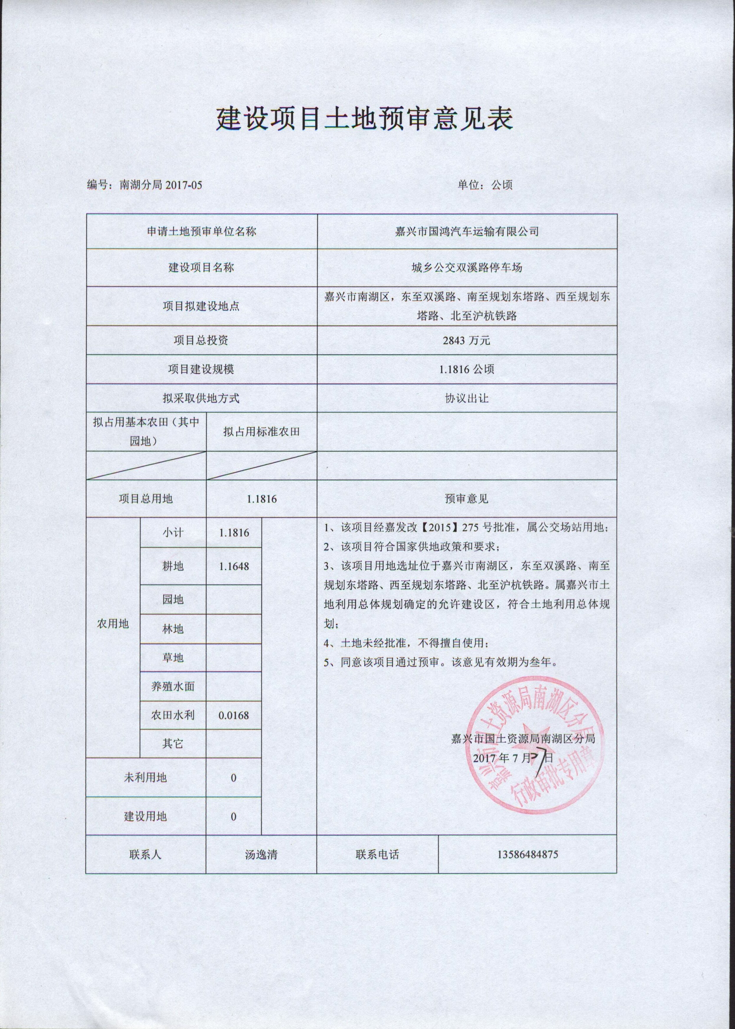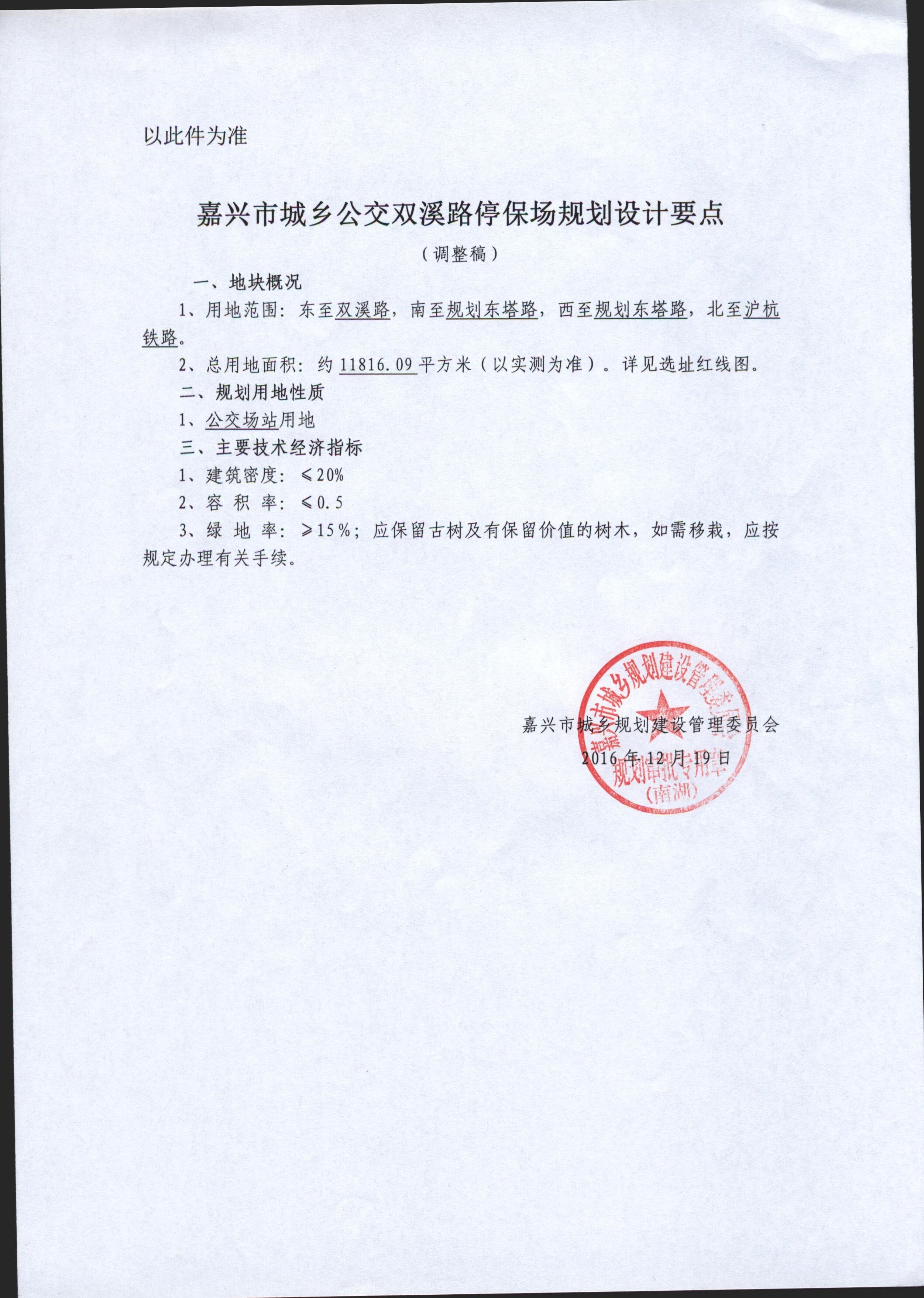嘉興市城鄉(xiāng)公交雙溪路停車場建設項目選址意見書