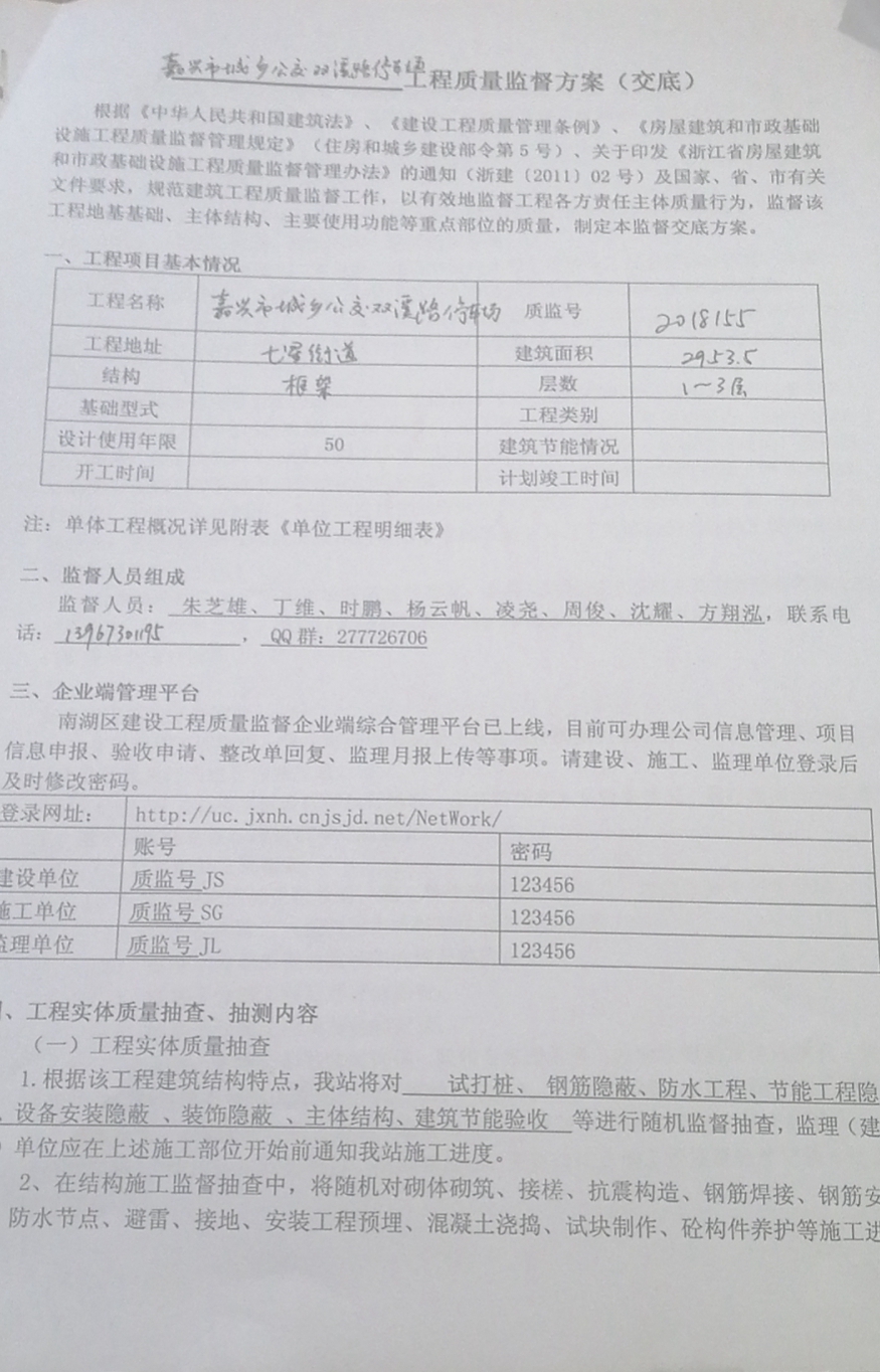 嘉興市城鄉(xiāng)公交雙溪路停車場項(xiàng)目工程質(zhì)量監(jiān)督方案
